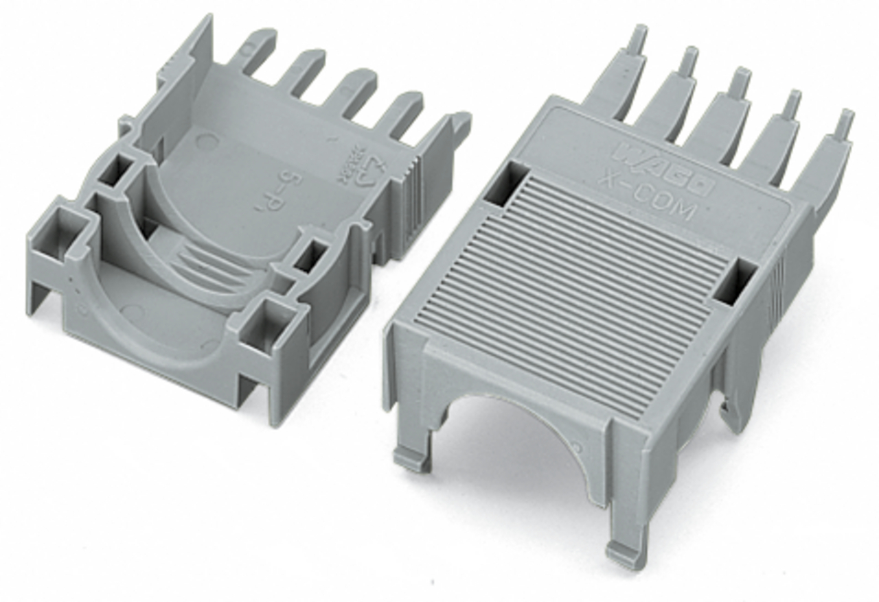 obudowa odciążająca przewody; do gniazd i wtyków; 2-częściowa; raster 5 mm; 9-bieg.; szary