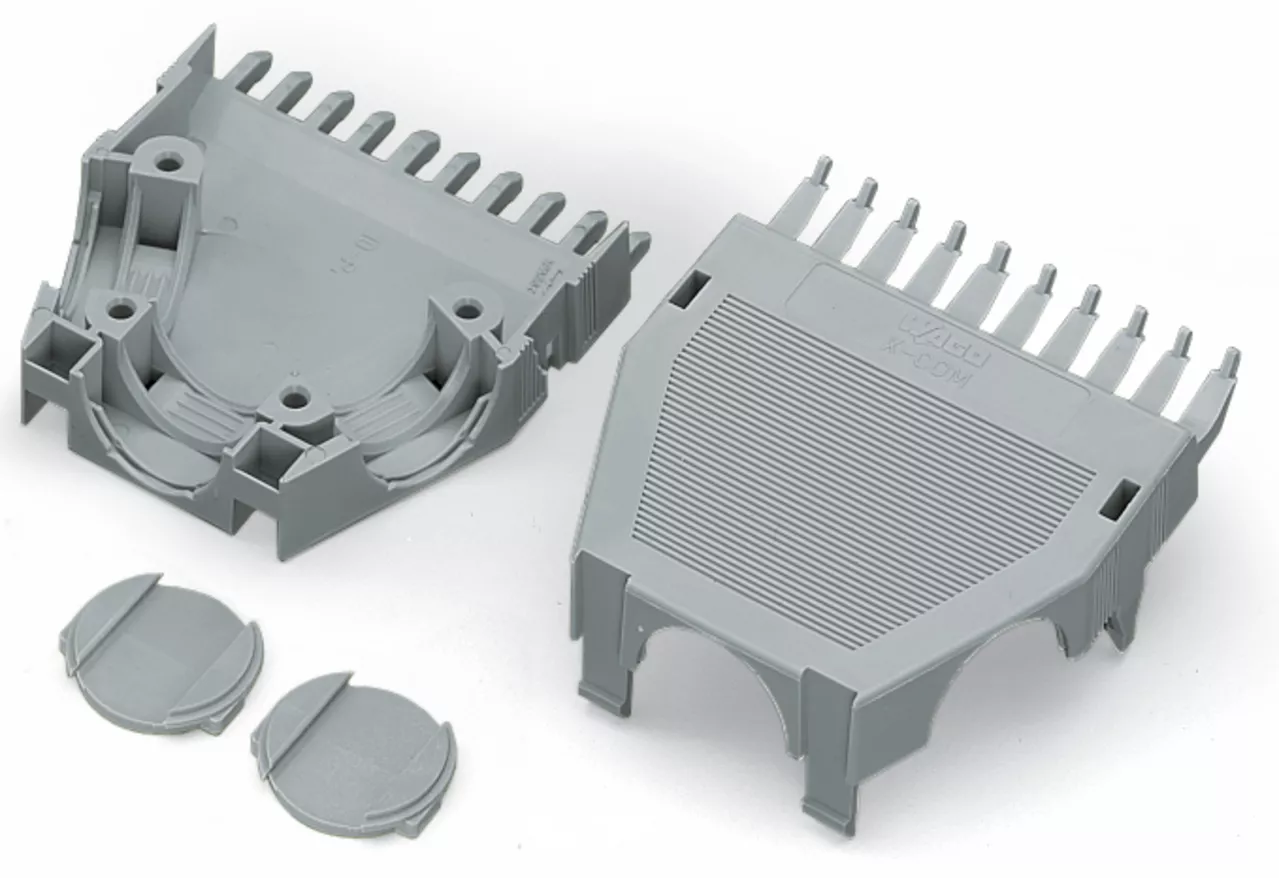 obudowa odciążająca przewody; do gniazd i wtyków; 2-częściowa; raster 5 mm; 13-bieg.; szary