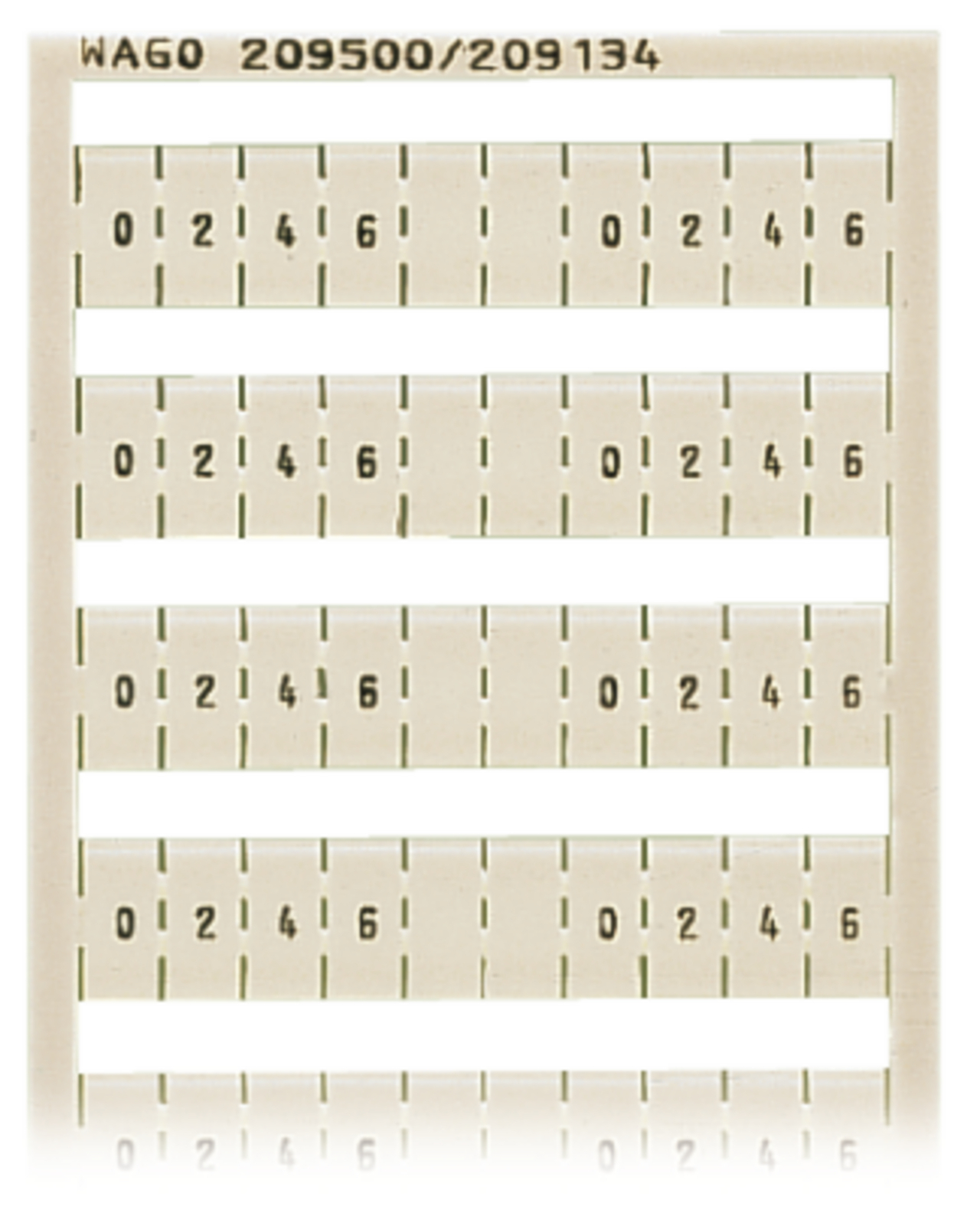 mata oznacznikowa WSB; jako karta; z nadrukiem; 0, 2, 4, 6, , , 0, 2, 4, 6; (5x) / 1, 3, 5, 7, , ,1, 3, 5, 7; (5x); nierozciągalne; nadruk poziomo; do montażu zatrzaskowego; biały