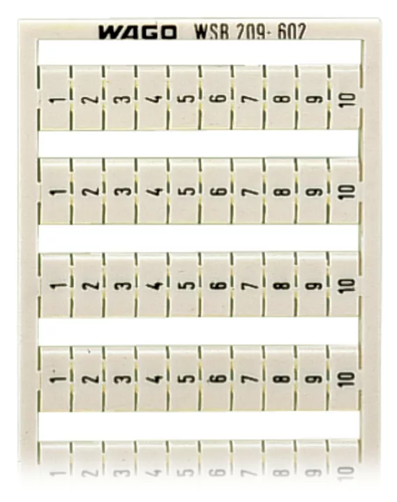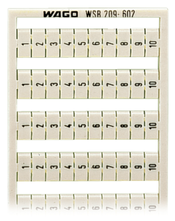 mata oznacznikowa WSB; jako karta; z nadrukiem; 1 ... 10 (10x); nierozciągalne; nadruk pionowo; do montażu zatrzaskowego; biały