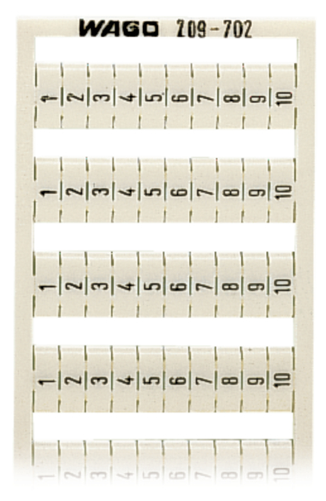 mata oznacznikowa WSB; jako karta; z nadrukiem; 1 ... 10 (10x); nierozciągalne; nadruk pionowo; do montażu zatrzaskowego; biały