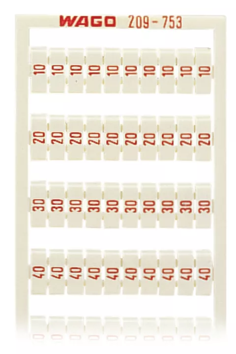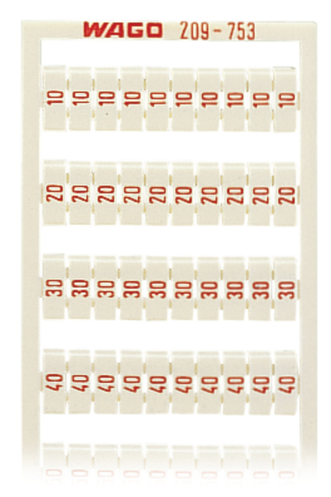 mata oznacznikowa WSB; jako karta; z nadrukiem; 10, 20 ... 50 (po 20x); nierozciągalne; nadruk pionowo; do montażu zatrzaskowego; biały