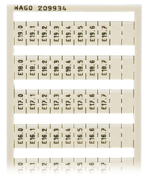 mata oznacznikowa WSB; jako karta; z nadrukiem; E10.0, E10.1, ..., E19.6, E19.7 (po1x); nierozciągalne; nadruk pionowo; do montażu zatrzaskowego; biały