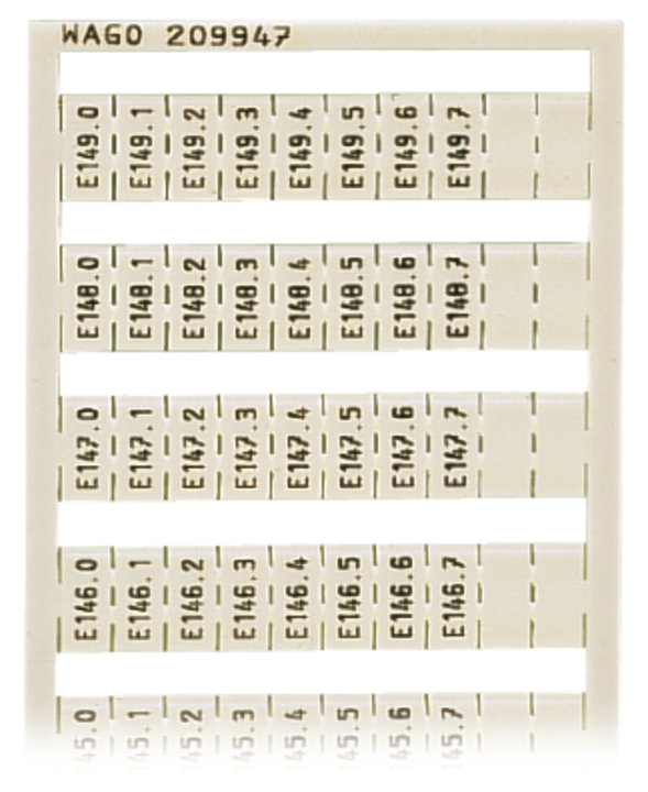 mata oznacznikowa WSB; jako karta; z nadrukiem; E140.0, E140.1,...,E149.6, E149.7 (po1x); nierozciągalne; nadruk pionowo; do montażu zatrzaskowego; biały