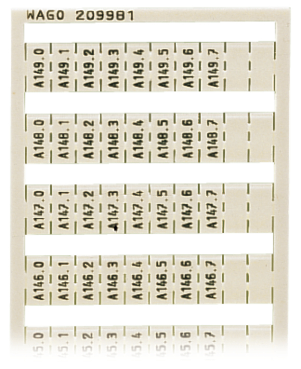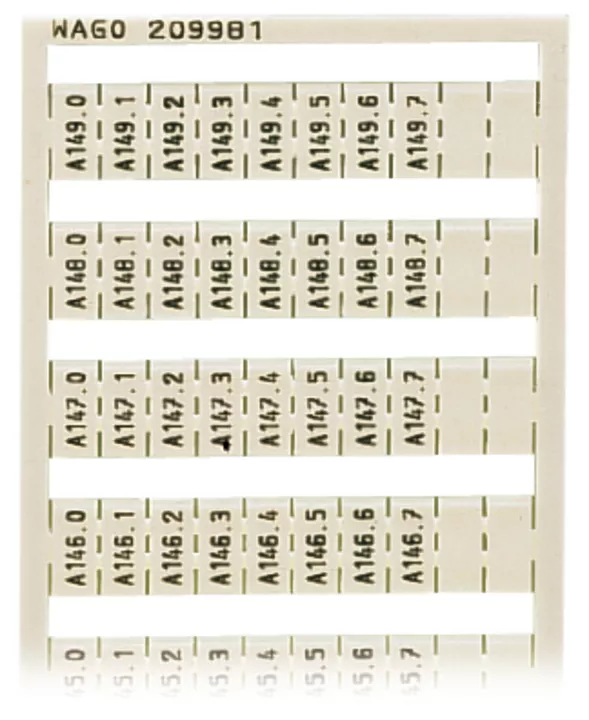 mata oznacznikowa WSB; jako karta; z nadrukiem; A140.0, A140.1,.., A149.6, A149.7(po1x); nierozciągalne; nadruk pionowo; do montażu zatrzaskowego; biały