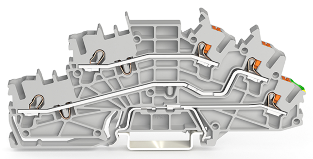 Piętrowa złączka instalacyjna; z otworami montażowymi i przyciskami; 2,5 mm²; L/L/PE; parter żółto-zielony; Push-in CAGE CLAMP®; 2,50 mm²; szara 2203-6545