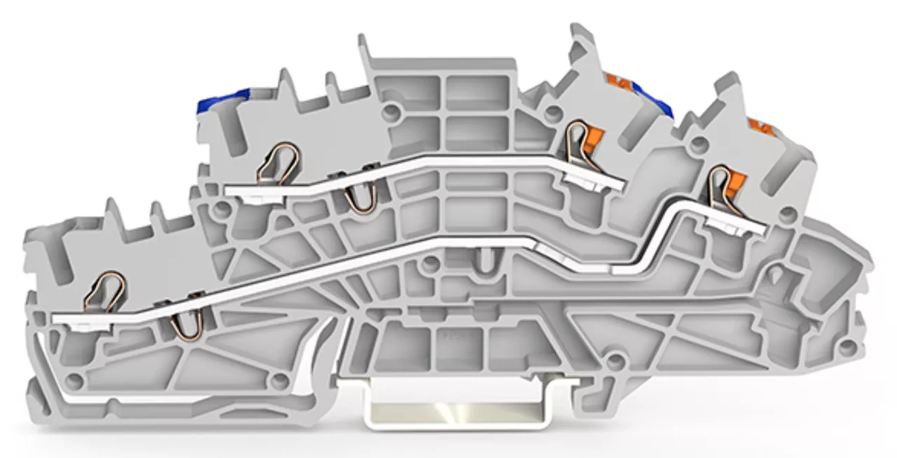złączka instalacyjna piętrowa; z otworami montażowymi i przyciskami; 2,5 mm²; N/L; Push-in CAGE CLAMP®; 2,50 mm²; szary