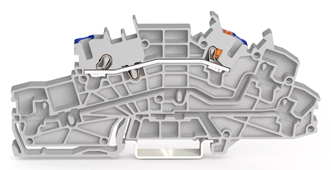 Piętrowa złączka instalacyjna; z otworami montażowymi i przyciskami; 2,5 mm²; N; Push-in CAGE CLAMP®; 2,50 mm²; szara 2203-6551