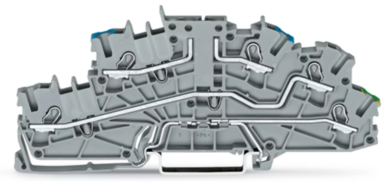 złączka instalacyjna piętrowa; z otworem montażowym; 2,5 mm²; złączka bazowa bez łącznika nożowego; N/L/PE; Push-in CAGE CLAMP®; 2,50 mm²; szary