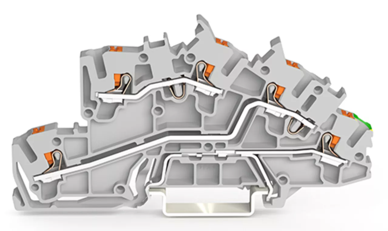 złączka instalacyjna piętrowa; z przyciskami; 2,5 mm²; L/L/PE; Push-in CAGE CLAMP®; 2,50 mm²; szary