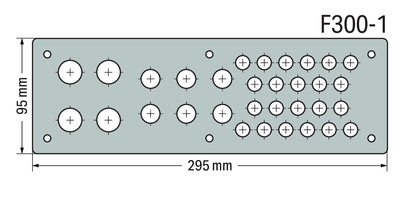 płyta przepustowa; płyta przepustowa F300-1; S x W (295x95 mm); otwory: 4 x M20, 6 x M16, 22 x M12