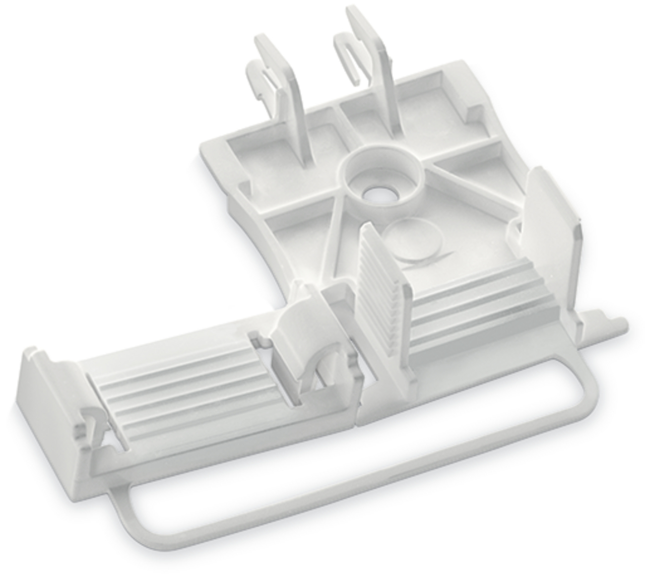 płytka odciążająca przewody; do serii 294; do pojedynczych żył; 3- do 5-bieg.; z zabezpieczoną obejmą; biały