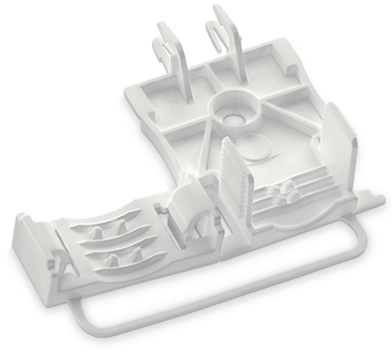płytka odciążająca przewody; do serii 294; do przewodów o podwójnej izolacji; 3- do 5-bieg.; z zabezpieczoną obejmą; biały