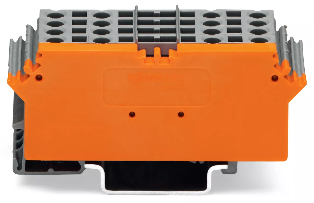 podstawka bazowa; 8-bieg.; ze złączkami 4-przewodowymi; z podstawką oznacznika; z pomarańczową ścianką rozdzielającą; na szynę TS 35 x 15 i 35 x 7,5; 2,5 mm²; CAGE CLAMP®; 2,50 mm²; szary