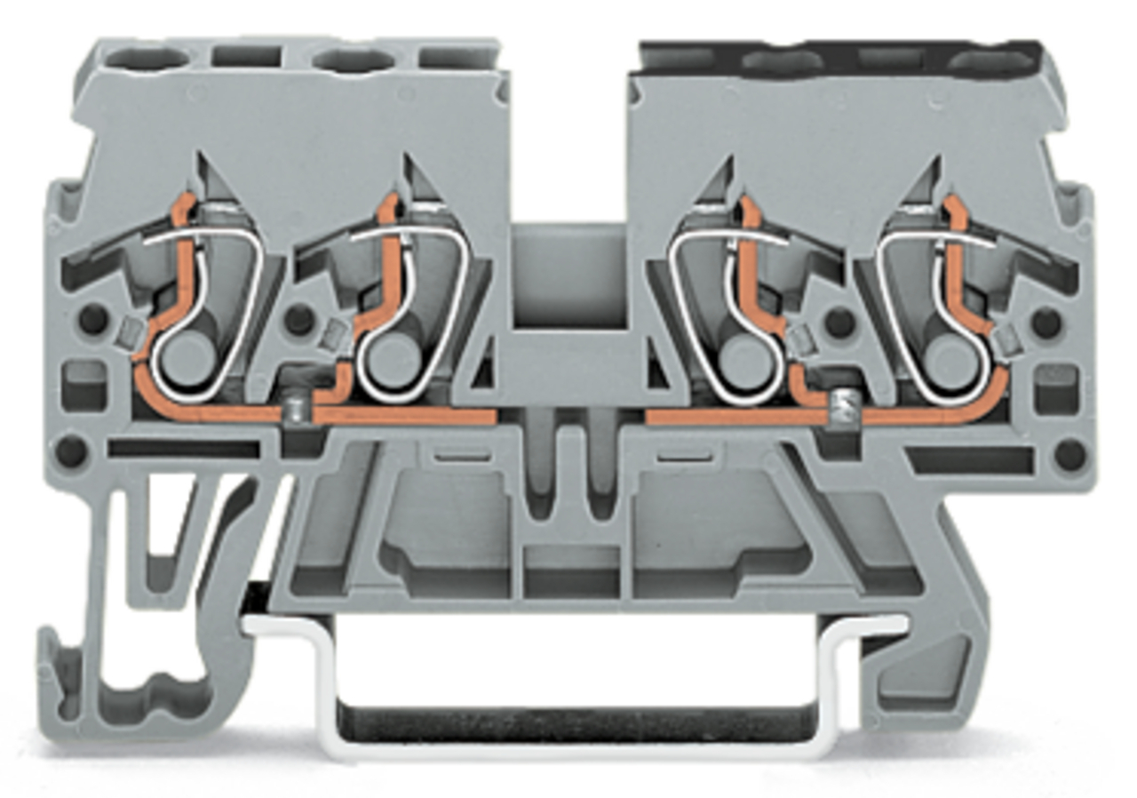 złączka przelotowa podwójna; 2,5 mm²; opis z boku i na środku; na szynę TS 35 x 15 i 35 x 7,5; CAGE CLAMP®; 2,50 mm²; szary