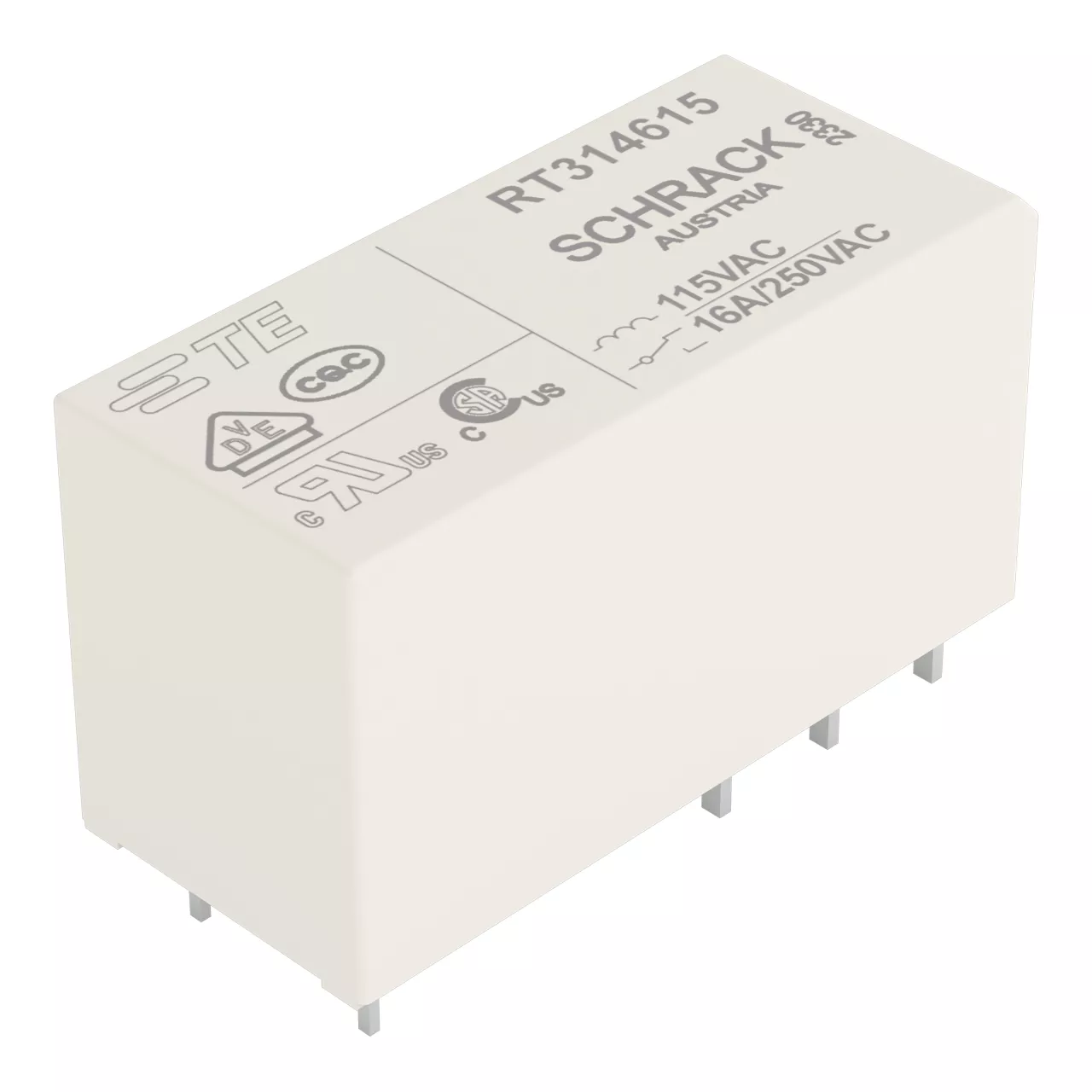 przekaźnik bazowy; znamionowe napięcie wejściowe 115 V AC; 1 zestyk przełączny; maksymalny prąd długotrwały 16 A; szerokość 13 mm; wysokość 15 mm