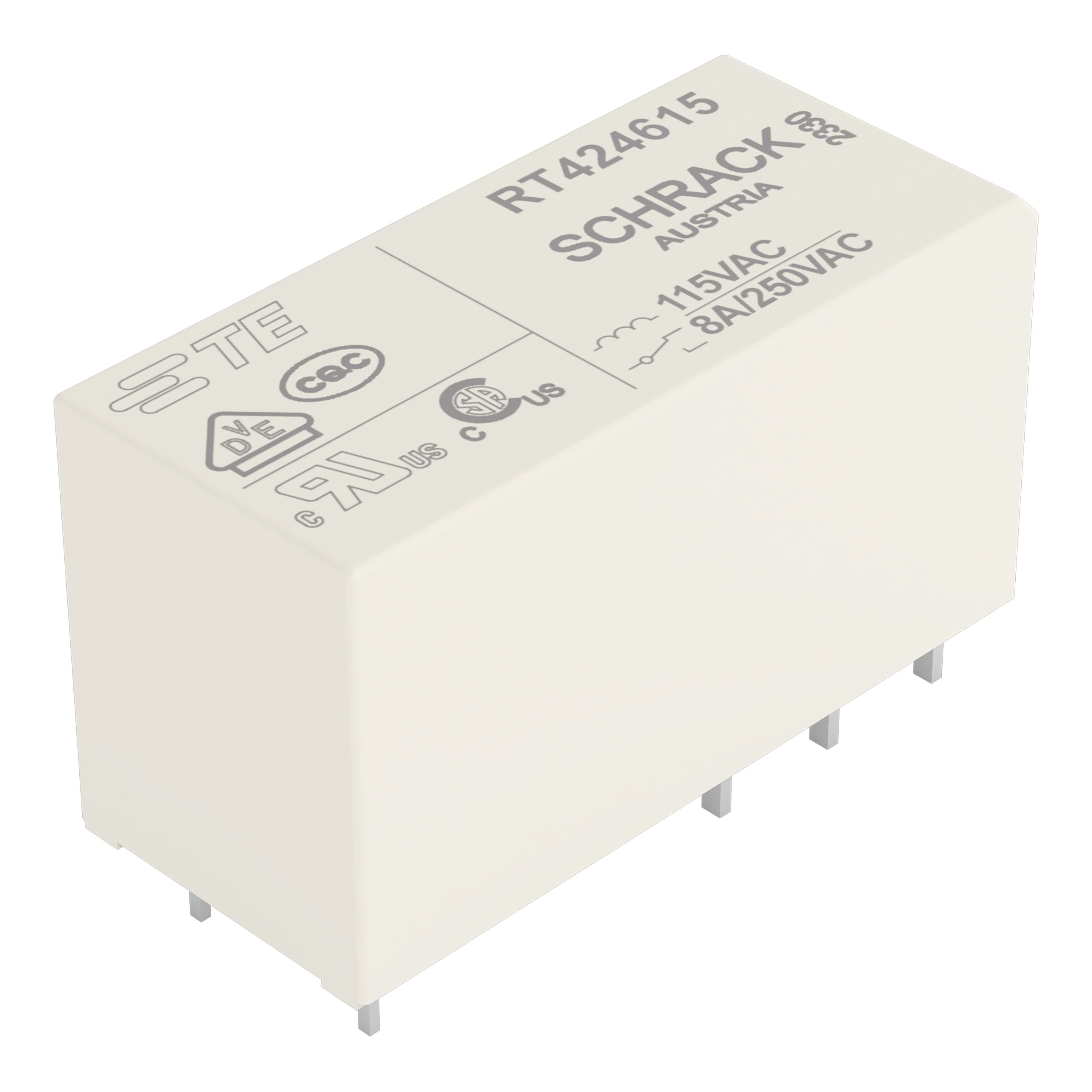 przekaźnik bazowy; znamionowe napięcie wejściowe 115 V AC; 2 x zestyk przełączny; maksymalny prąd długotrwały 8 A; szerokość 13 mm; wysokość 15 mm