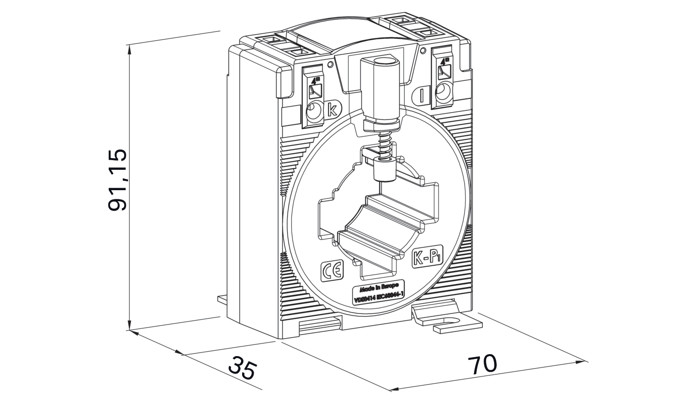 przewlekany przekładnik prądowy; pierwotny prąd znamionowy 600 A; znamionowy prąd wtórny 1 A; moc znamionowa 10 VA; klasa dokładności 1