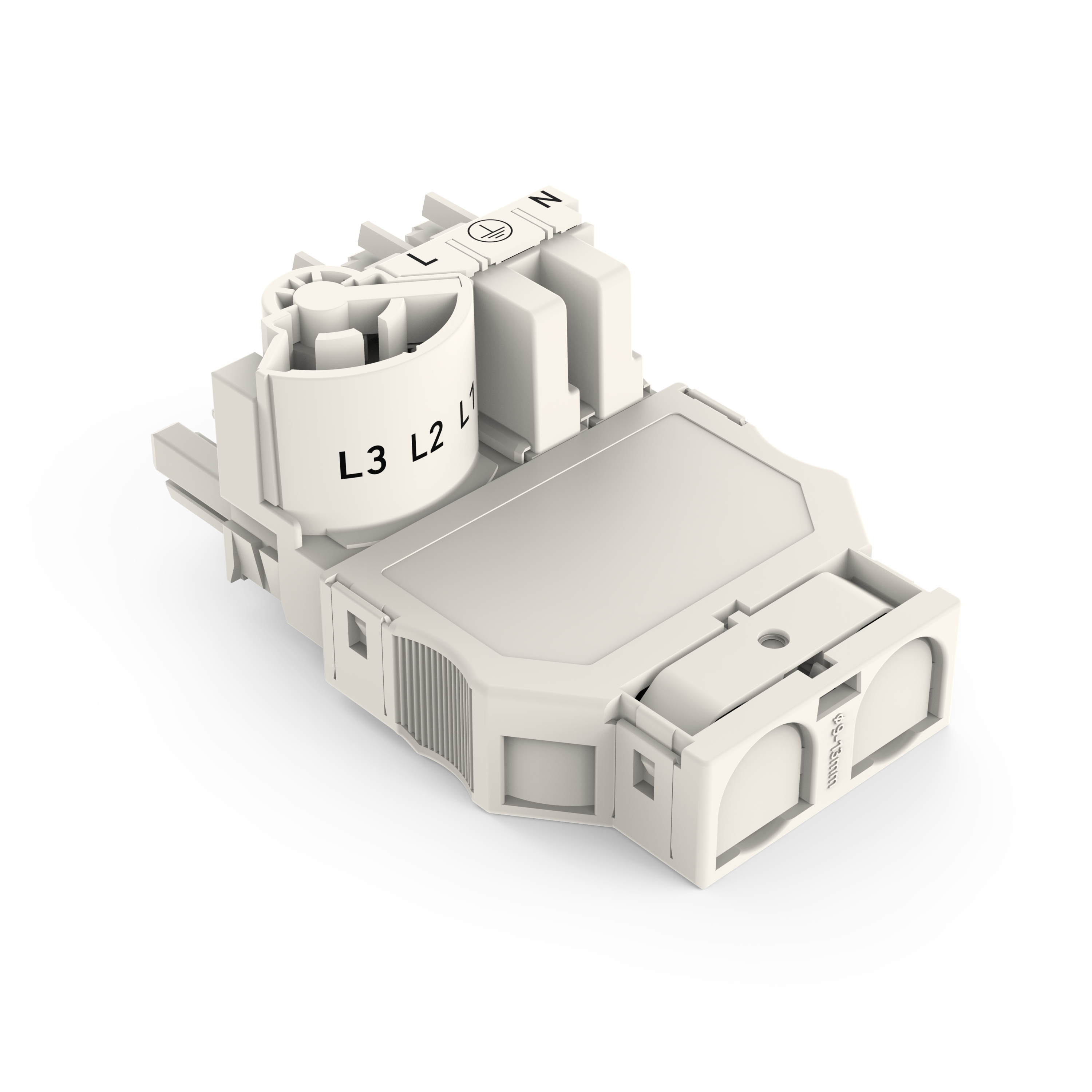 rozgałęźnik trójfazowy na jednofazowy; z możliwością wyboru fazy; 5-bieg./3-bieg.; kodowanie A; 1 wejście; 2 wyjścia; z podłączeniem przewodu na wejściu; biały
