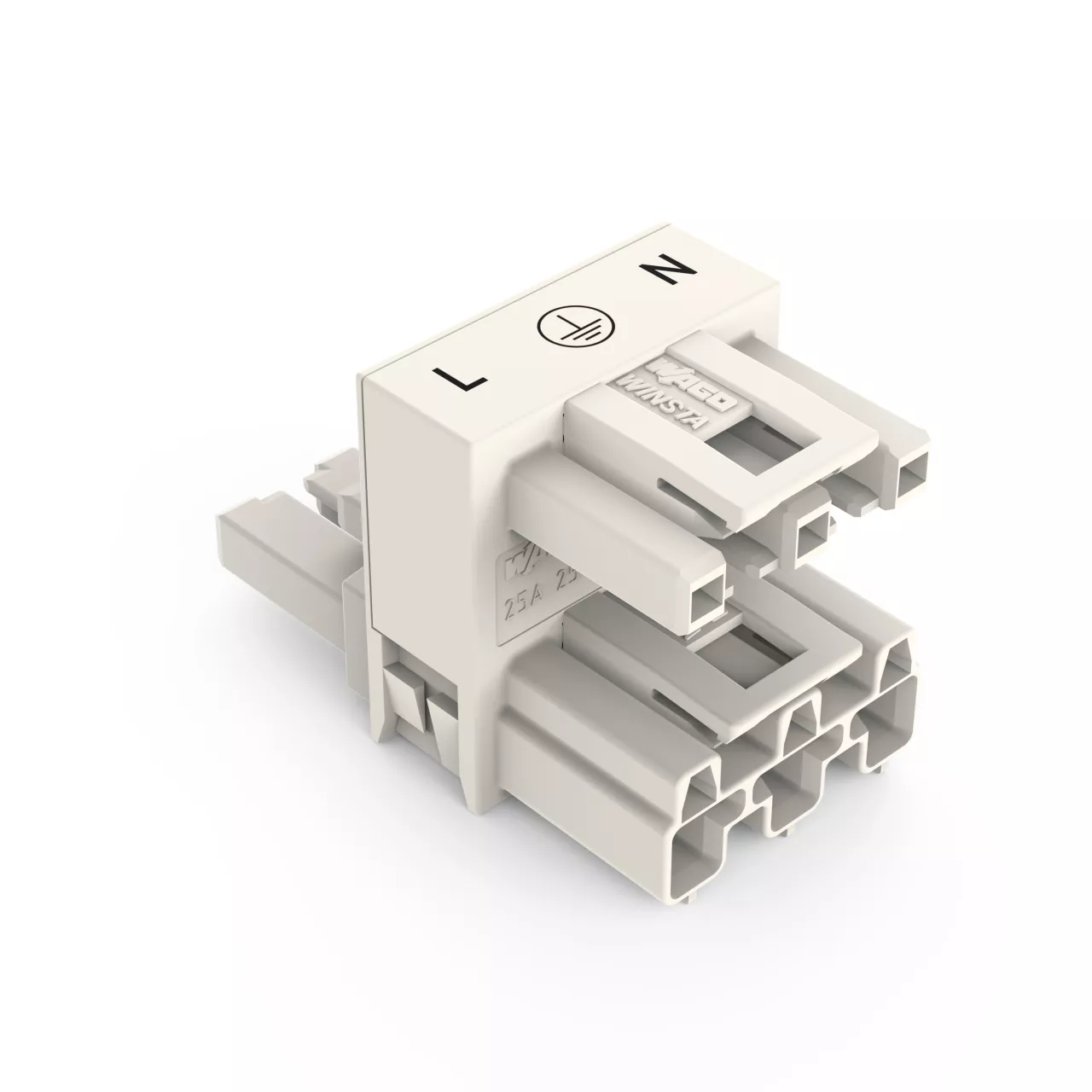 rozgałęźniki typu h; 3-bieg.; kodowanie A; 1 wejście; 2 wyjścia; odejścia obustronne; 2 zaczepy ryglujące; biały