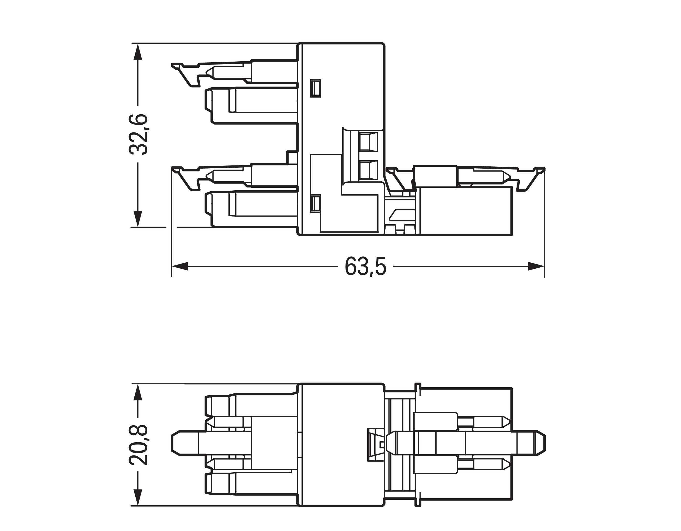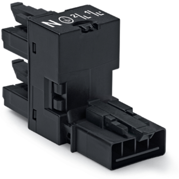 rozgałęźniki typu h; 4-bieg.; kodowanie A; 1 wejście; 2 wyjścia; odejścia jednostronne; 3 zaczepy ryglujące; do połączeń swobodnych; czarny