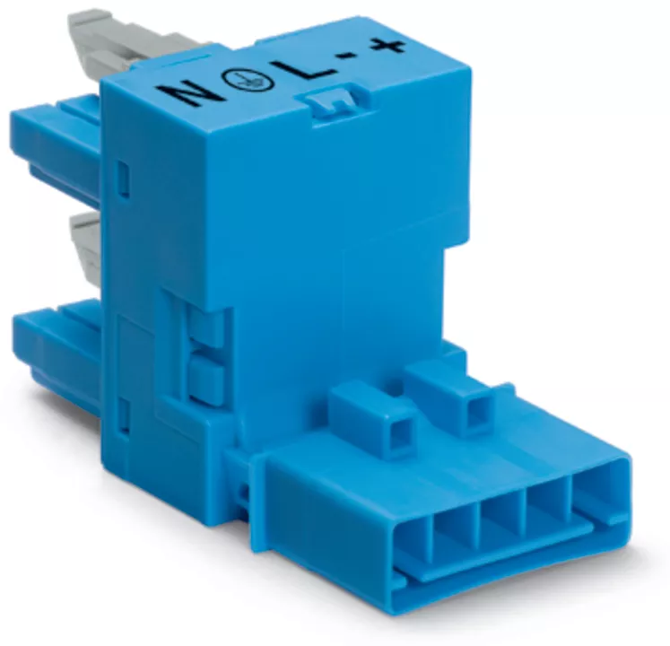 rozgałęźniki typu h; 5-bieg.; kodowanie I; 1 wejście; 2 wyjścia; odejścia jednostronne; 2 zaczepy ryglujące; niebieski