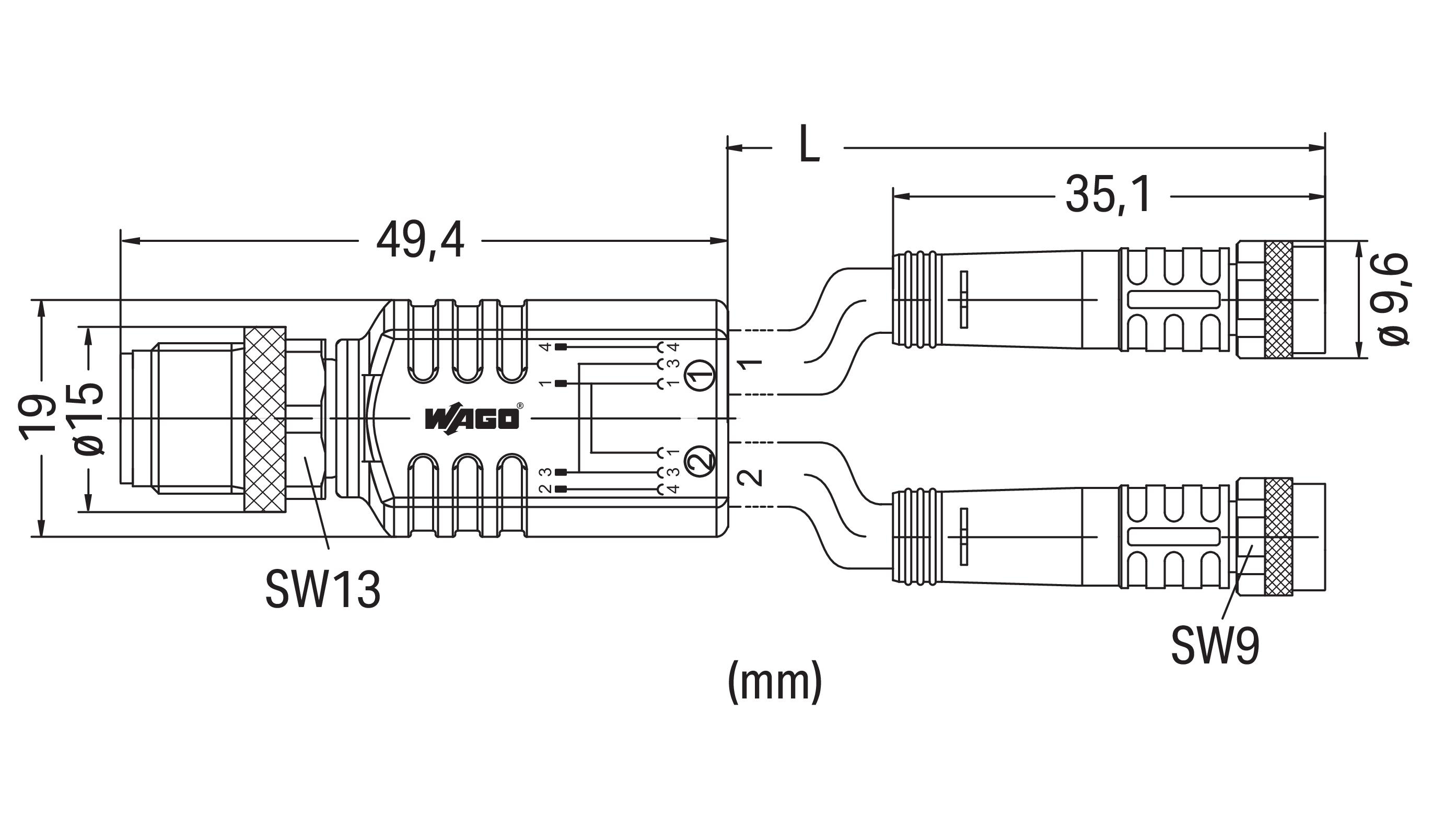 SA-C 2 x M8-F-AX M12A-M-AX Przewód czujnika elementu wykonawczego 756-5513/040-010