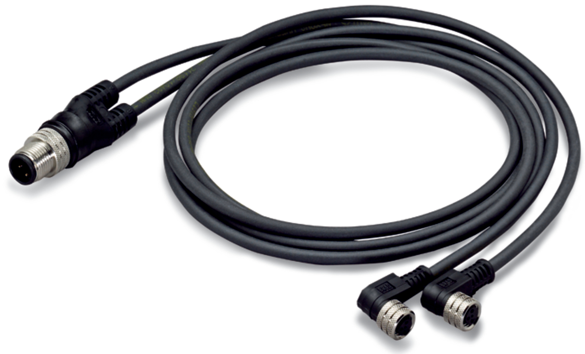 przewód do czujników/elementów wykonawczych; 2xM8 gniazdo kątowe; M12 wtyk prosty; 4-bieg.; długość 2 m
