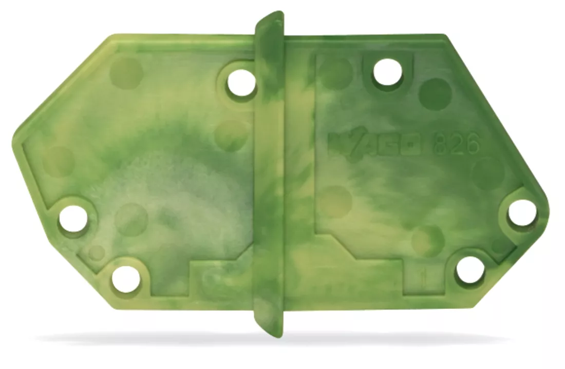 Ścianka końcowa do montażu zatrzaskowego gr. 1,5 mm, żółto-zielona 826-158/000-016