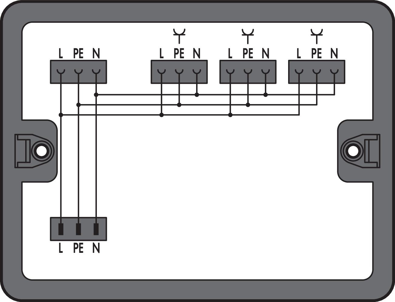 skrzynka rozdzielcza; jednofazowe (230 V); 1 wejście; 4 wyjścia; kodowanie A; MIDI; czarny