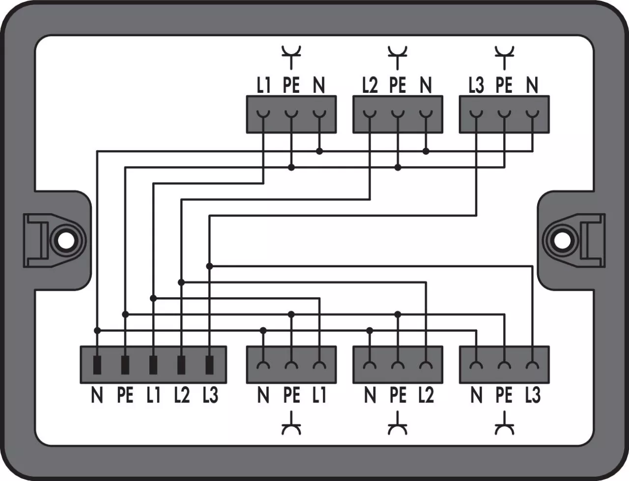 Skrzynka rozdzielcza trójfazowy na jednofazowy (400V/230V), czarna 899-631/105-000