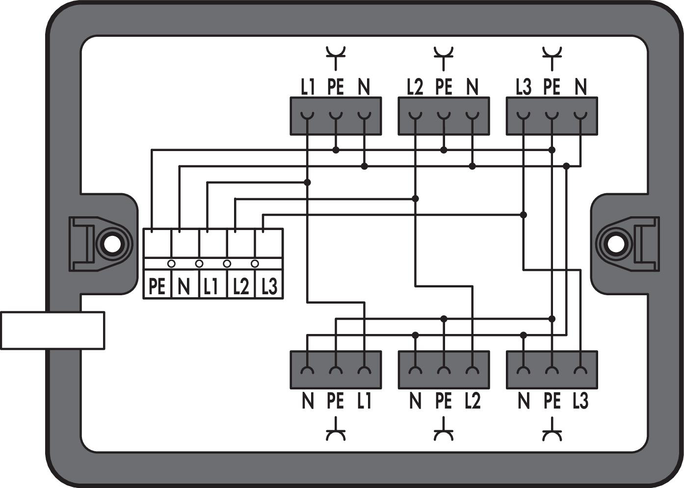 Skrzynka rozdzielcza trójfazowy na jednofazowy (400V/230V) wprowadzenie przewodów, czarna 899-631/338-000