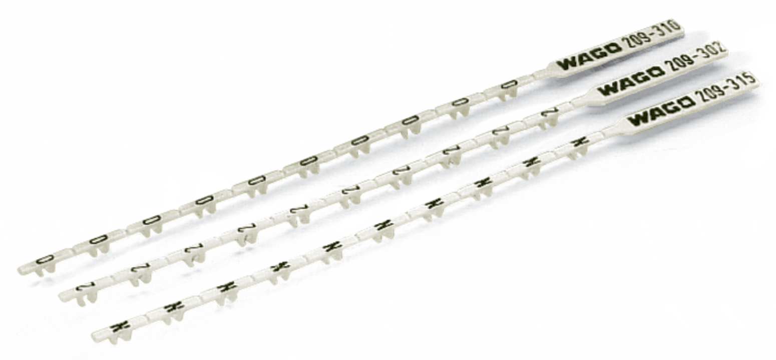 pasek z jednoznakowymi oznacznikami; z nadrukiem; W; nierozciągalne; nadruk poziomo; do montażu zatrzaskowego; biały