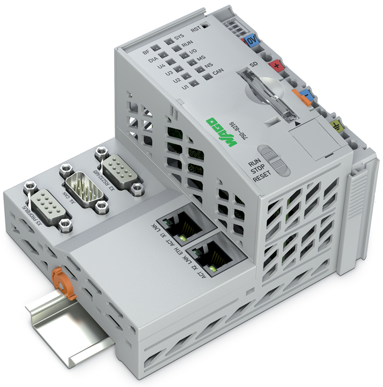 Sterowniki PFC200; 2. generacja; 2 x ETHERNET, RS-232/-485, CAN, CANopen, slave PROFIBUS; telesterowanie; rozsz. temp. 750-8216/025-000
