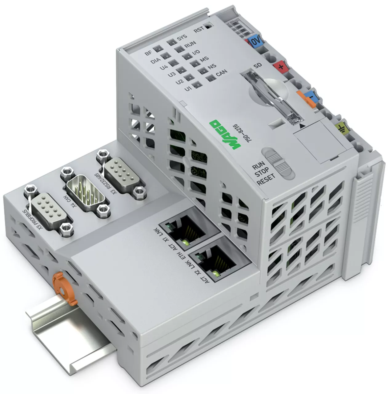 Sterowniki PFC200; 2. generacja; 2 x ETHERNET, RS-232/-485, CAN, CANopen, slave PROFIBUS; telesterowanie; rozsz. temp. 750-8216/025-001