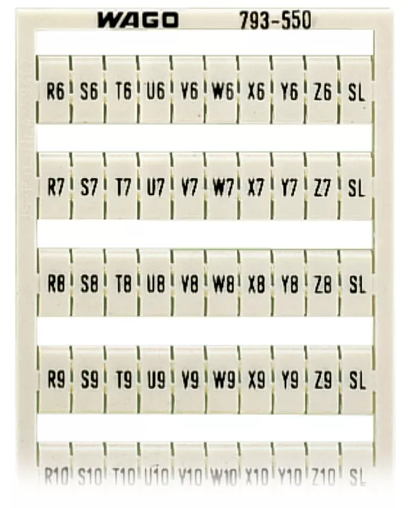 mata oznacznikowa WMB; jako karta; z nadrukiem; R6, S6, T6, ..., Y6, Z6, SL do R10, S10, T10, ..., Y10, Z10, SL (każdy 2x); nierozciągalne; nadruk poziomo; do montażu zatrzaskowego; biały