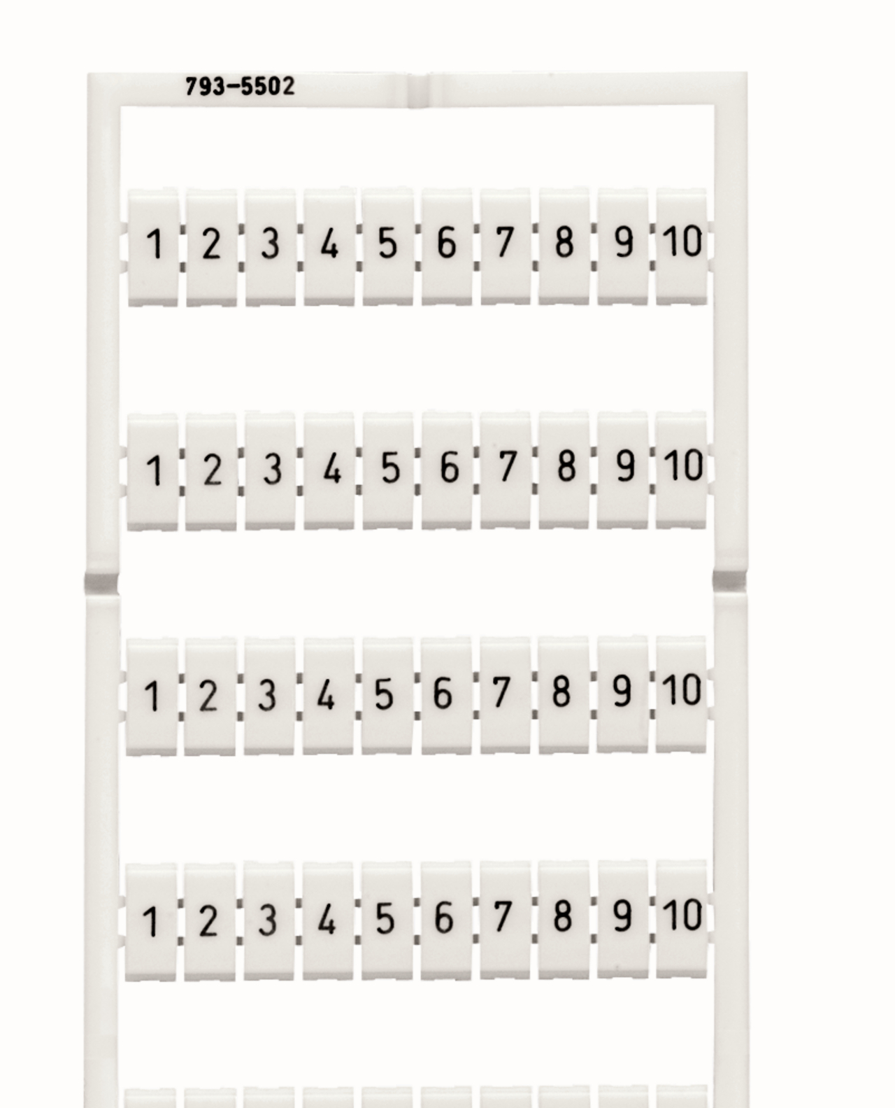 mata oznacznikowa WMB; jako karta; z nadrukiem; 1 ... 10 (10x); z możliwością rozciągnięcia z 5 mm do 5,2 mm; nadruk poziomo; do montażu zatrzaskowego; biały