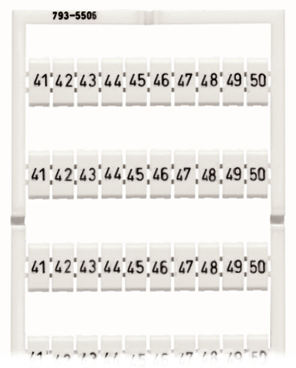 mata oznacznikowa WMB; jako karta; z nadrukiem; 41 ... 50 (10x); z możliwością rozciągnięcia z 5 mm do 5,2 mm; nadruk poziomo; do montażu zatrzaskowego; biały