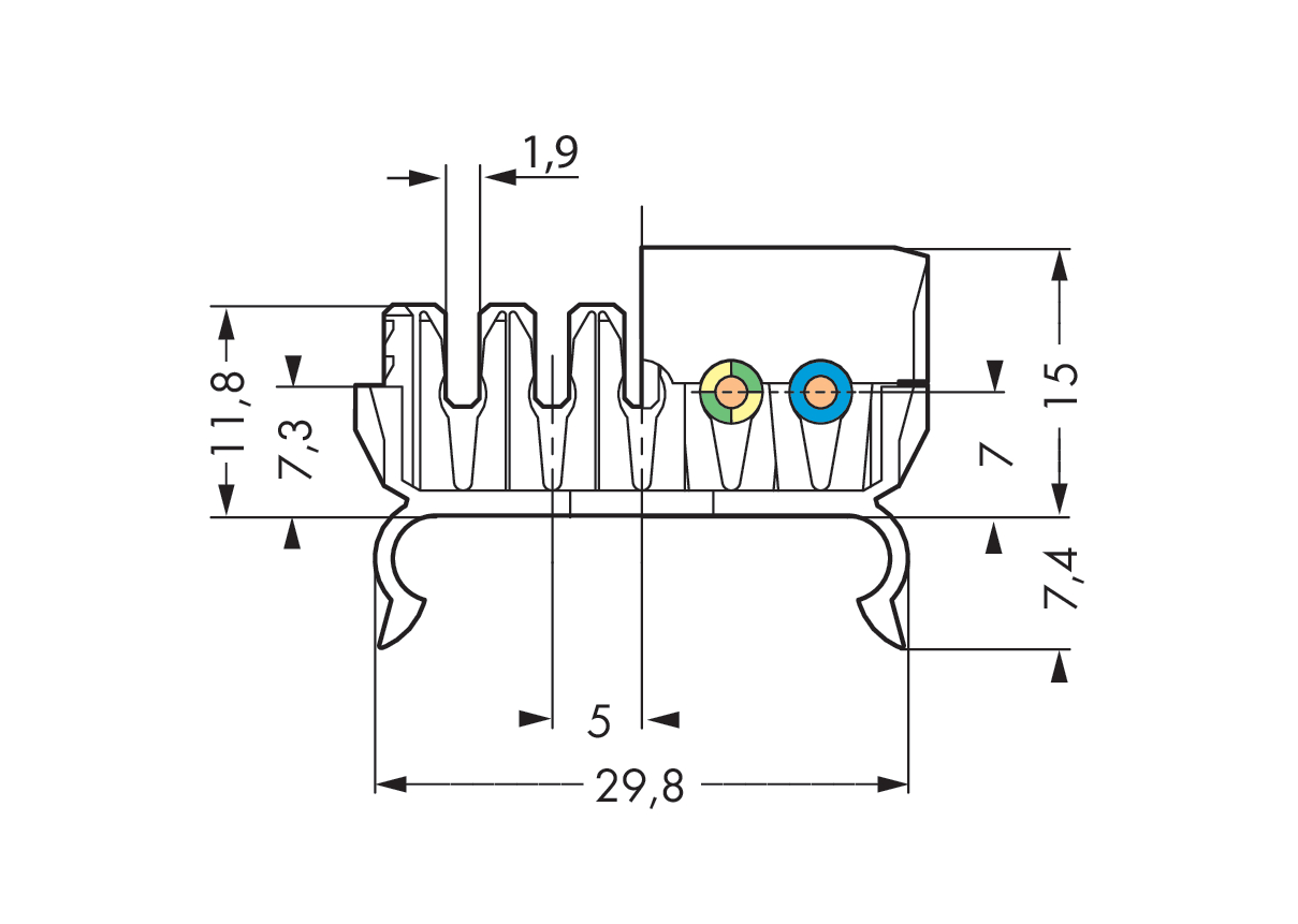 uchwyt przewodowy, część górna; bez styku PE; 5-bieg.; 2,50 mm²; biały