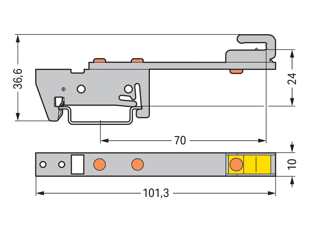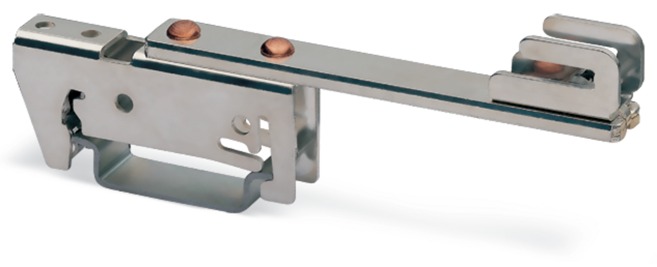 wspornik szyny zbiorczej; do szyn zbiorczych Cu 10 mm x 3 mm; jednostronny prosty; do montażu zatrzaskowego na TS 35; srebrny