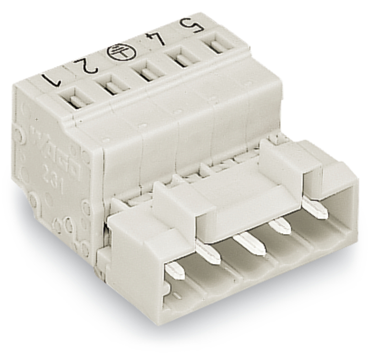 wtyk 1-przewodowy; CAGE CLAMP®; 2,5 mm²; raster 5 mm; 3-bieg.; wyprzedzający styk PE; 100% ochrona przed błędnym połączeniem; TS 35/montaż na płycie; stopki zatrzaskowe; z nadrukiem bezpośrednim; 2,50 mm²; jasnoszary