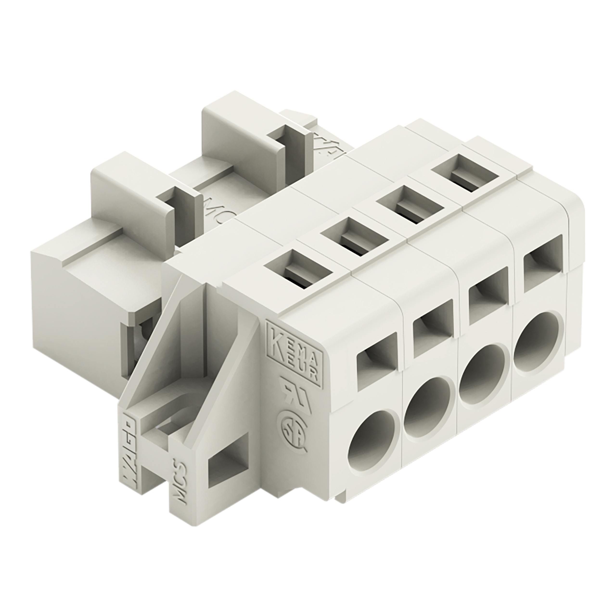 wtyk 1-przewodowy; CAGE CLAMP®; 2,5 mm²; raster 5 mm; 4-bieg.; 100% ochrona przed błędnym połączeniem; kołnierz mocujący; 2,50 mm²; jasnoszary