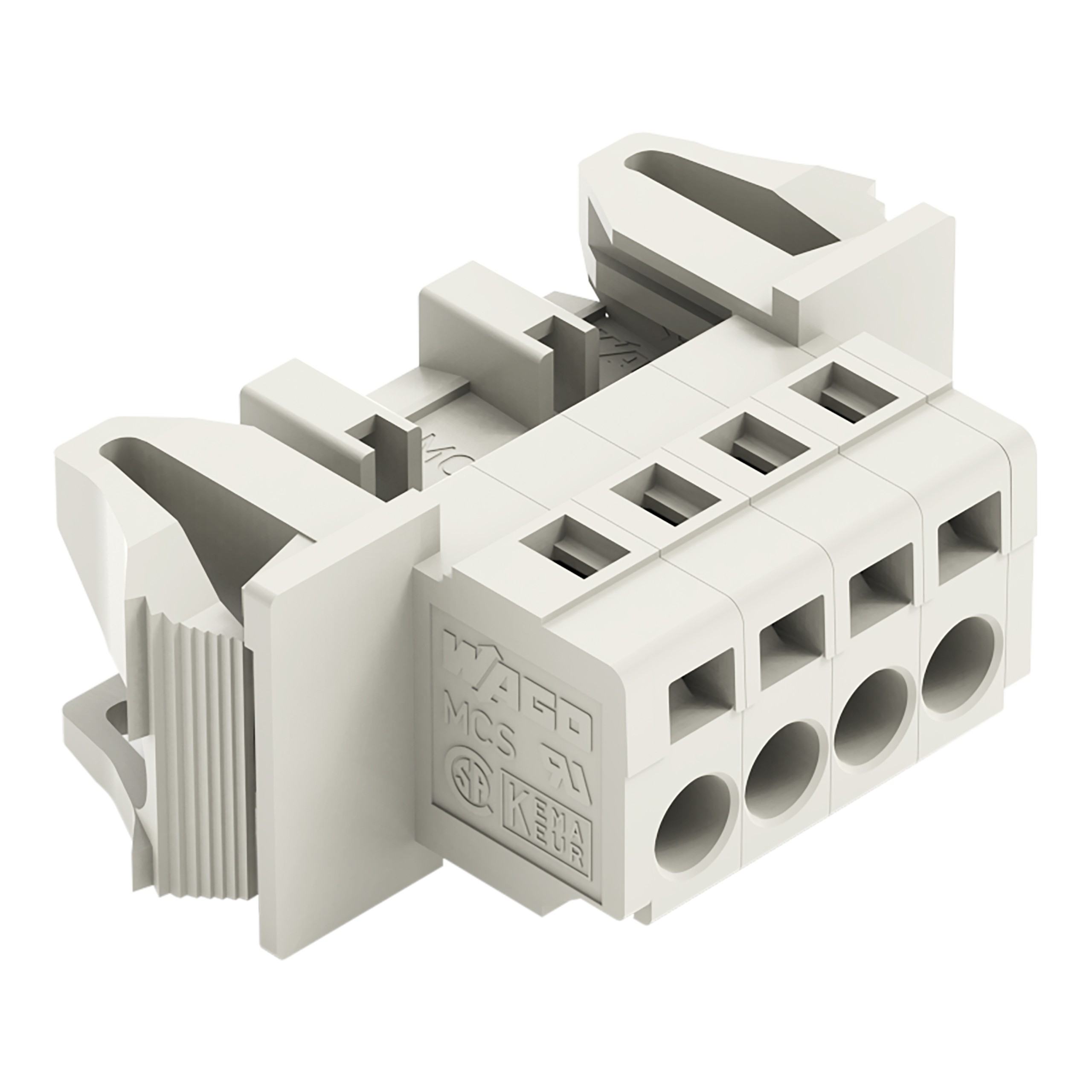 wtyk 1-przewodowy; CAGE CLAMP®; 2,5 mm²; raster 5 mm; 4-bieg.; 100% ochrona przed błędnym połączeniem; uchwyt Snap-In; 2,50 mm²; jasnoszary
