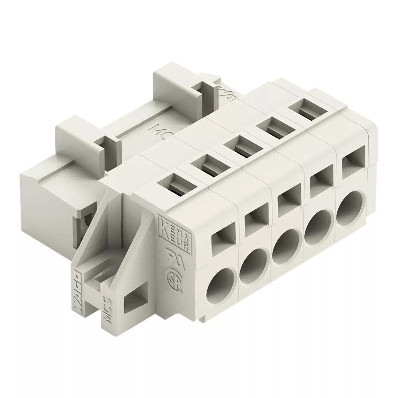 wtyk 1-przewodowy; CAGE CLAMP®; 2,5 mm²; raster 5 mm; 5-bieg.; 100% ochrona przed błędnym połączeniem; kołnierz mocujący; 2,50 mm²; jasnoszary