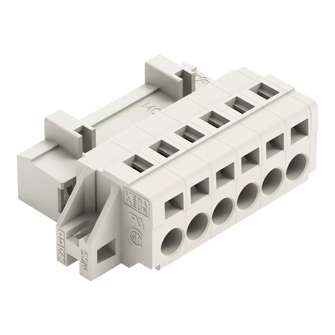 wtyk 1-przewodowy; CAGE CLAMP®; 2,5 mm²; raster 5 mm; 6-bieg.; 100% ochrona przed błędnym połączeniem; kołnierz mocujący; 2,50 mm²; jasnoszary