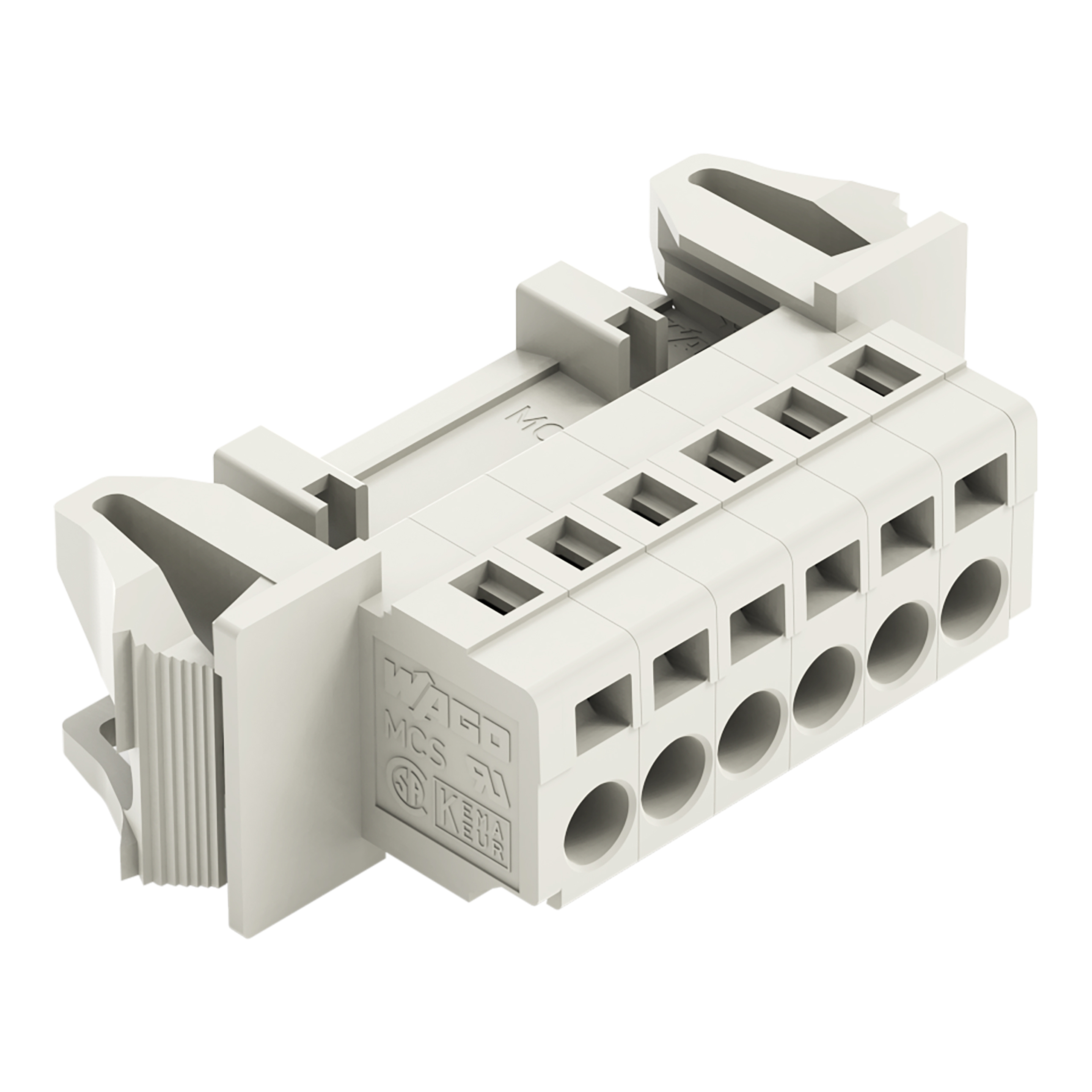 wtyk 1-przewodowy; CAGE CLAMP®; 2,5 mm²; raster 5 mm; 6-bieg.; 100% ochrona przed błędnym połączeniem; uchwyt Snap-In; 2,50 mm²; jasnoszary