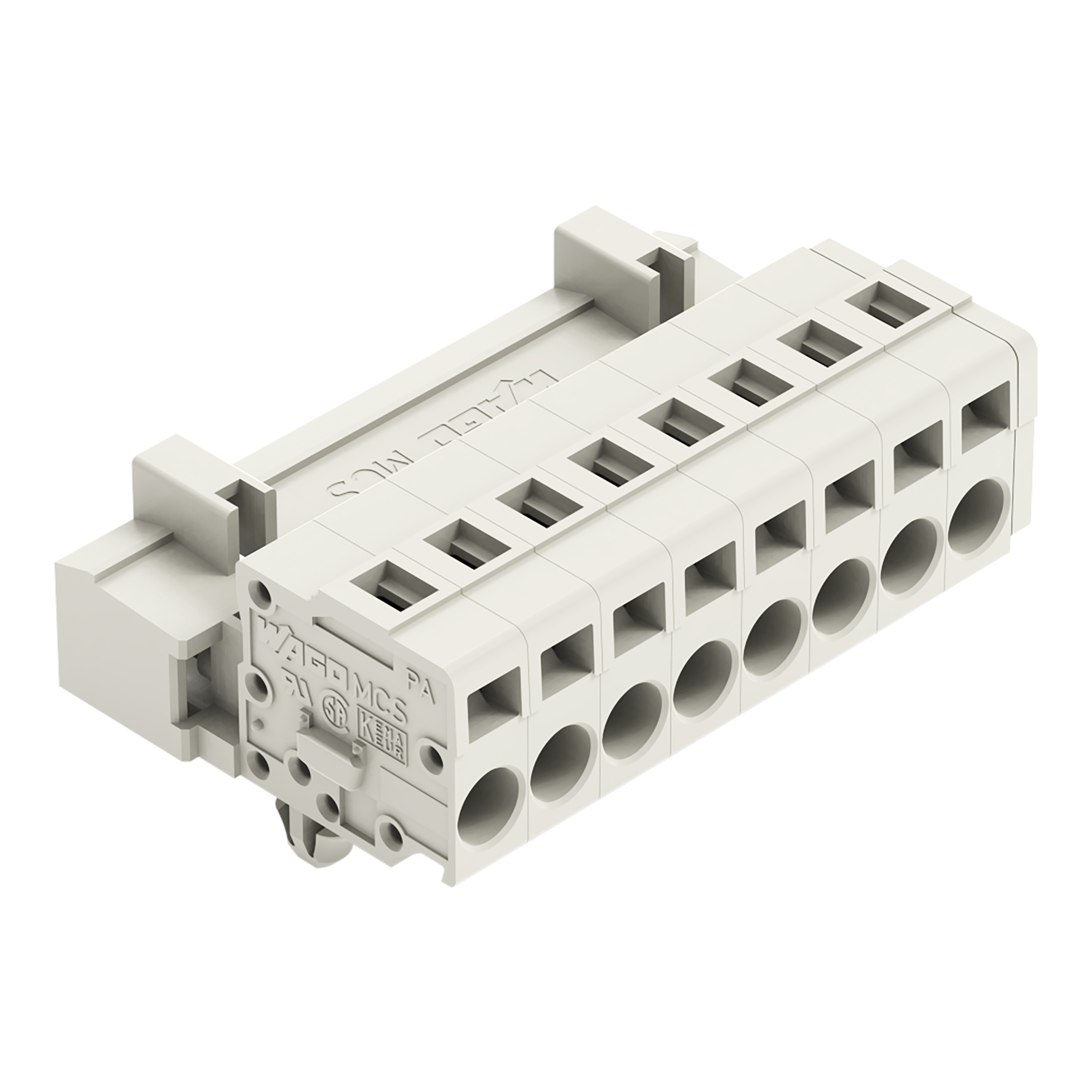 wtyk 1-przewodowy; CAGE CLAMP®; 2,5 mm²; raster 5 mm; 8-bieg.; 100% ochrona przed błędnym połączeniem; TS 35/montaż na płycie; stopki zatrzaskowe; 2,50 mm²; jasnoszary