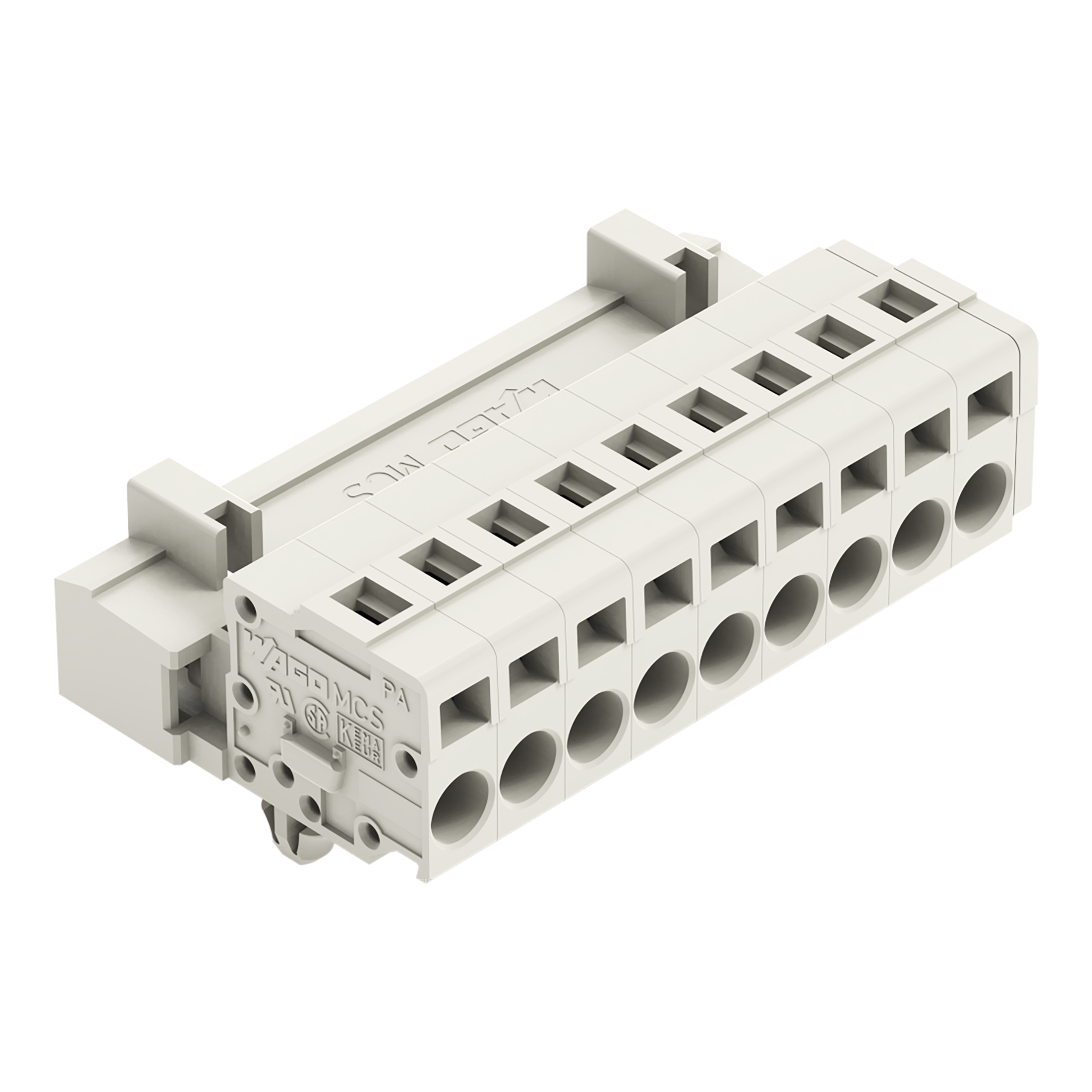 wtyk 1-przewodowy; CAGE CLAMP®; 2,5 mm²; raster 5 mm; 9-bieg.; 100% ochrona przed błędnym połączeniem; TS 35/montaż na płycie; stopki zatrzaskowe; 2,50 mm²; jasnoszary
