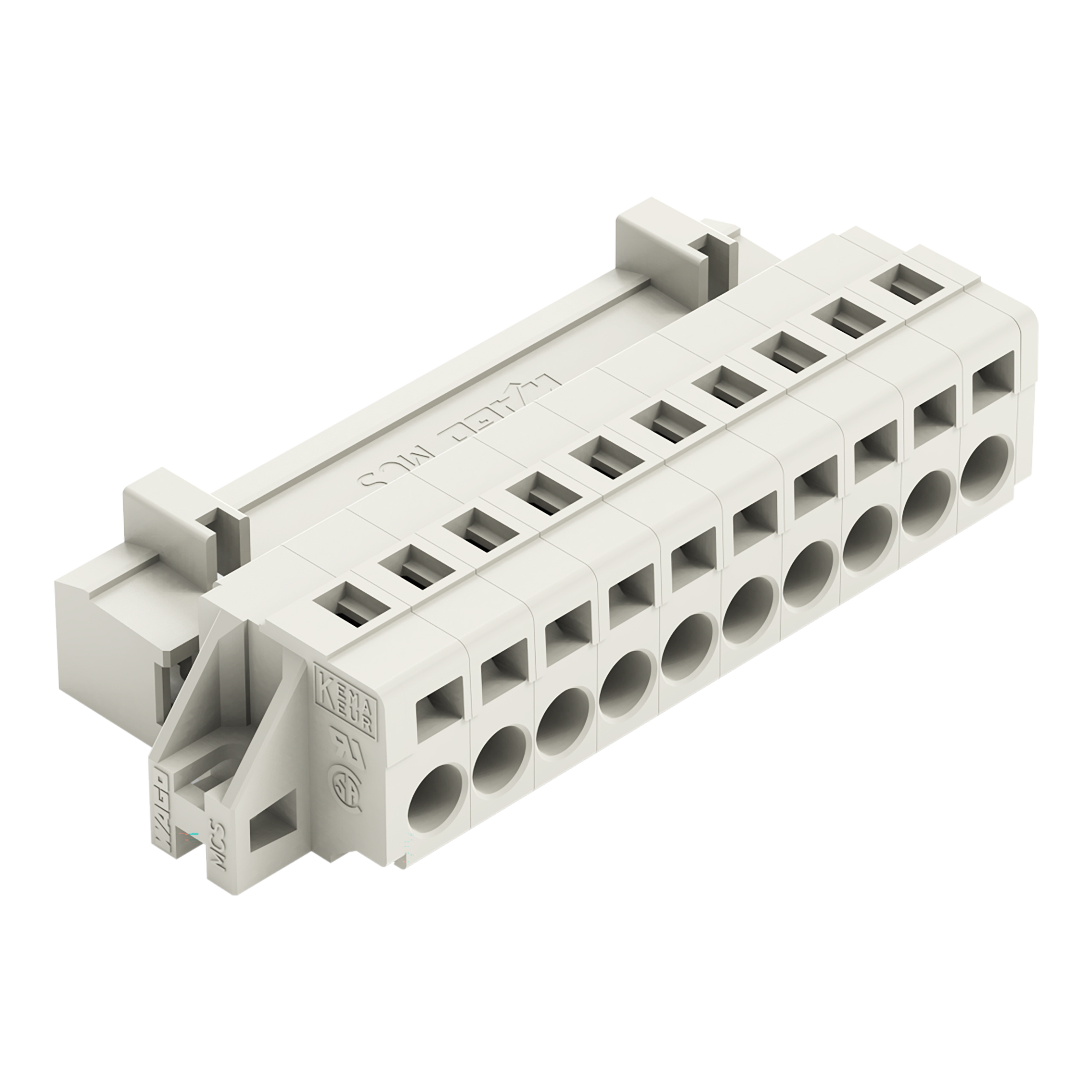 wtyk 1-przewodowy; CAGE CLAMP®; 2,5 mm²; raster 5 mm; 10-bieg.; 100% ochrona przed błędnym połączeniem; kołnierz mocujący; 2,50 mm²; jasnoszary