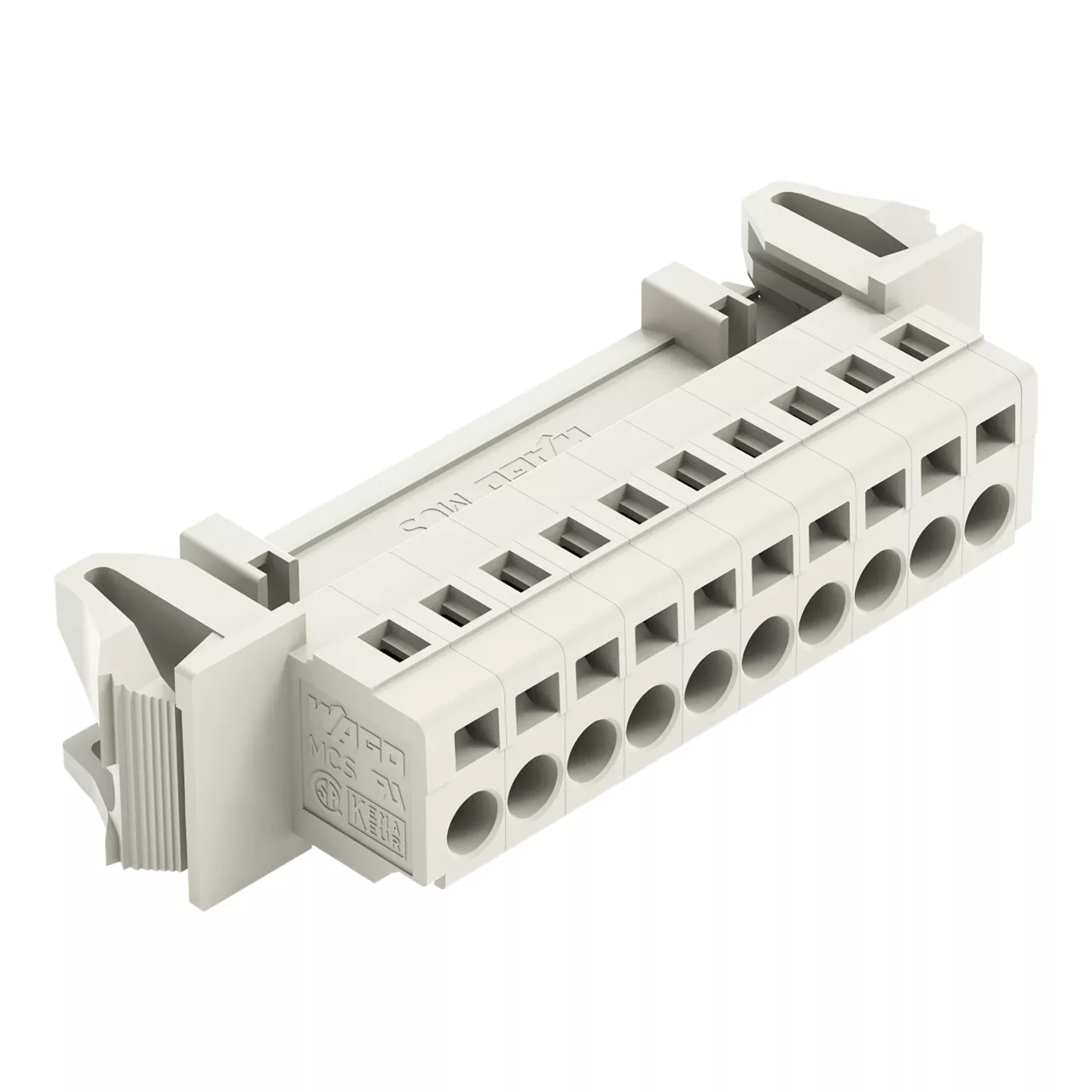wtyk 1-przewodowy; CAGE CLAMP®; 2,5 mm²; raster 5 mm; 10-bieg.; 100% ochrona przed błędnym połączeniem; uchwyt Snap-In; 2,50 mm²; jasnoszary